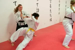 We teach karate as self-defense, NOT SPORT. Class begins with a brief warm-up. We hone our techniques with basics. Then we train with a partner against unarmed and armed attackers, multiple attackers, and every other self-defense possibility. You get physical exercise from executing technique. We are not an exercise class. We prepare you to be able to handle any confrontation.